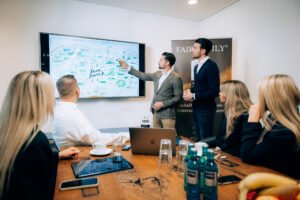 Bei einem Business oder Office Shooting ist es besonders wichtig die Expertise der Firma über die Bildsprache zu kommunizieren. Es werden neben Portraits, Schreibtisch Szenen und Impressionen aus den Räumlichkeiten auch Besprechungs- und Gesprächsszenen fotografiert. Was in eurem Fall Sinn macht, besprechen wir im kostenlosen Erstgespräch, denn das hängt auch von eurer Leistung und Zielgruppe ab.
